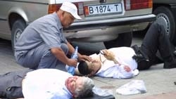 - Жыргалбек Сурабалдиев өзүнүн иштеген жеринен чыгып, күлүп эле бир шапкечен киши менен көрүштү. Алар учурашып жатканда эле ары жактан бир ак түсөгү автоунаа келип эле атып жиберди. Маркасын так айта албайм, “Мерседеске” окшогон актүстөгү автоунаа экен. Биринчи бир-эки жолу ок атылды. Андан кийин депутаттын машинеси жолду тосту, тоскондо тигилер мылтыктан көп жолу ата башташты. Ошол жерде тургандардын баары драмтеатрды көздөй качтык, жерге жата калдык. Эгерде машине жолду ачып бербегенде баарын атып салмак.