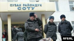 Сузак айыл өкмөтүнүн алдына топтолгон адамдар өз балдары менен күйөөлөрүнүн кармалганына нааразы болушту. Алар бир нече күндөн бери убактылуу кармоо жайында турган адамдарды бошотууну талап кылышты. Чогулгандардын арасында турган Давлатхан аттуу аял абактагы атасынан кабар алганы барган уулунун да кармалганы менен макул эмес.