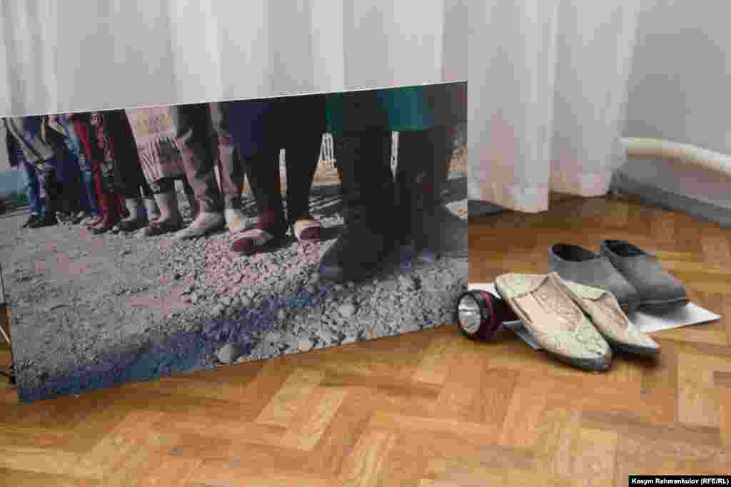 Бул сүрөт "Оор суу" деп аталат. Ак-Талаа районундагы Тоголок Молдо айылынын кээ бир тургундары үчүн таза суу алып келүү жолу 200 метрдей болот. Суу ташуу түйшүгү аялдар менен балдарга жүктөлгөн. Алар ар күнү 50 литрден 100 литрге чейин суу ташыйт. Көргөзмөдөгү жип ушул айылдагы жашоочунун суу түтүгүнөн үйүнө чейинки жолунун аралыгын көрсөтөт. Бул эки чаканы алып, Тоголок Молдо айылынын тургуну Эркингүл Итибаеванын жолу менен басыңыз.